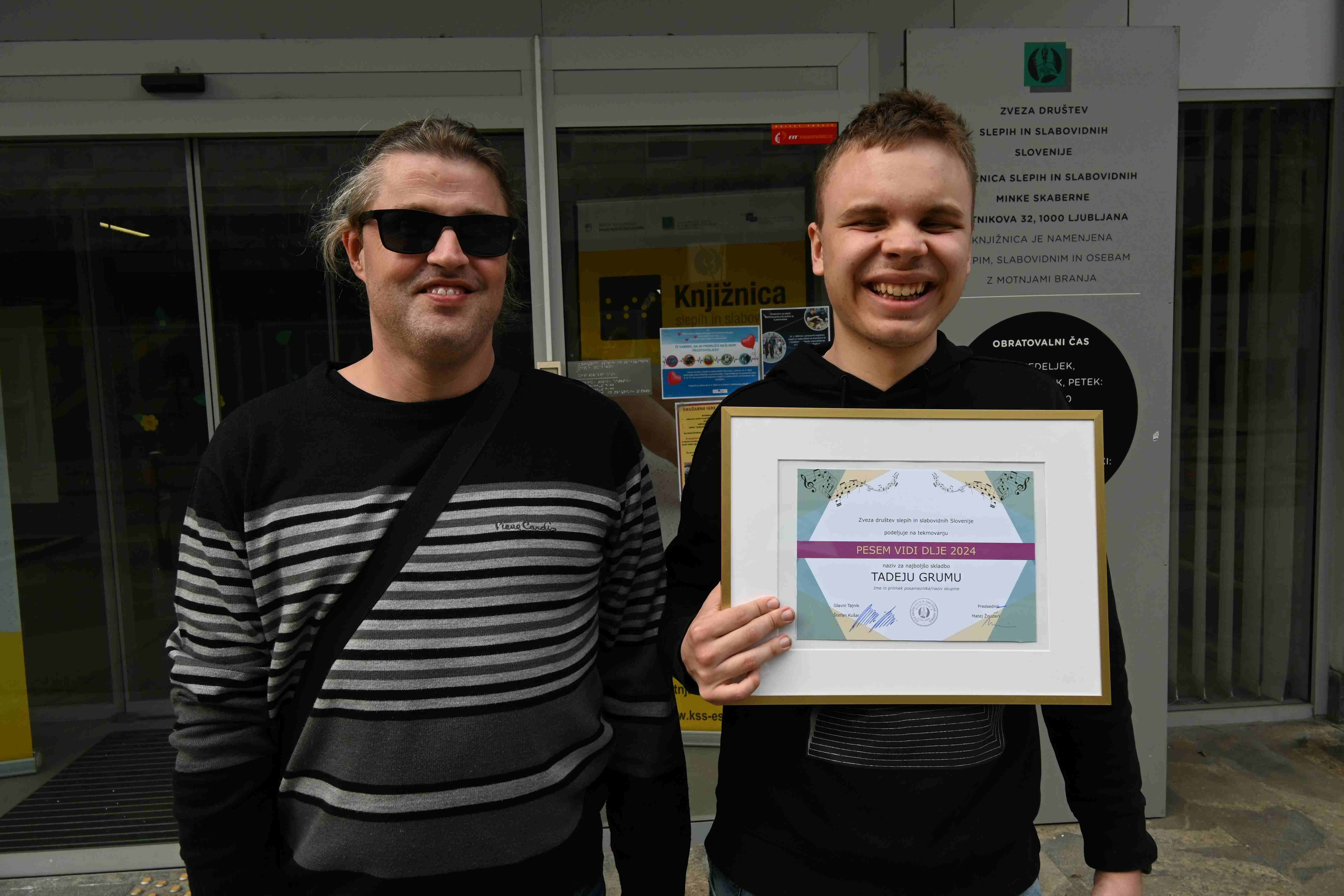 V Knjižnici slepih in slabovidnih Minke Skaberne Zveze društev slepih in slabovidnih Slovenije, je v petek, 15. 3. 2024, od 15. ure dalje potekala prireditev PESEM VIDI DLJE 2024. Na prireditvi so se predstavili izvajalci, ki so se odzvali na razpis Zveze za izbor najboljše skladbe slepih in slabovidnih. Izvajalci so lahko zapeli v katerem koli jeziku, pogoj za sodelovanje pa je bilo vsaj avtorstvo besedila ali glasbe in eden od glasbenikov, ki je slep ali slaboviden. Z razpisom Zveza spodbuja glasbeno ustvarjalnost slepih in slabovidnih ter jim ponuja možnost, da svoje delovanje predstavijo zainteresirani javnosti.