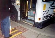 Slika predstavlja taktilne oznake pločnikov, ki slepim in slabovidnim olajšajo gibanje v urbanem okolju. So preprosta in cenovno dokaj ugodna rešitev.