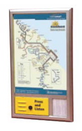 Slika predstavlja govorno opisno tablo, ki s pritiskom na gumb uporabniku posreduje posneta sporočila. Tabla je uporabna v muzejih, galerijah, pa tudi drugje za opis posameznih objektov.