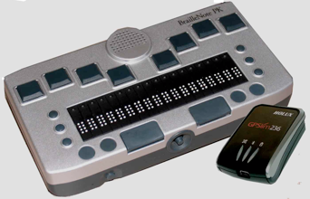 Slika predstavlja napreden sistem BrailleNote GPS version 3.5, ki s pomočjo Bluetooth brezžične povezave z GPS napravo pomaga slepim pri navigaciji in gibanju na nivoju cest, mest in ulic. Brajeva naprava pa lahko služi kot beležnica, urejevalnik besedil, predvajalnik MP3 datotek in spletni brskalnik.