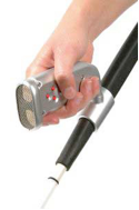 Slika predstavlja ultrazvočno palico, ki s pomočjo ultrazvočnega nastavka z vibriranjem sporoča oddaljenost od ovire. Bliže ko smo oviri, hitrejše je vibriranje. Primerna predvsem za gluho-slepo osebe