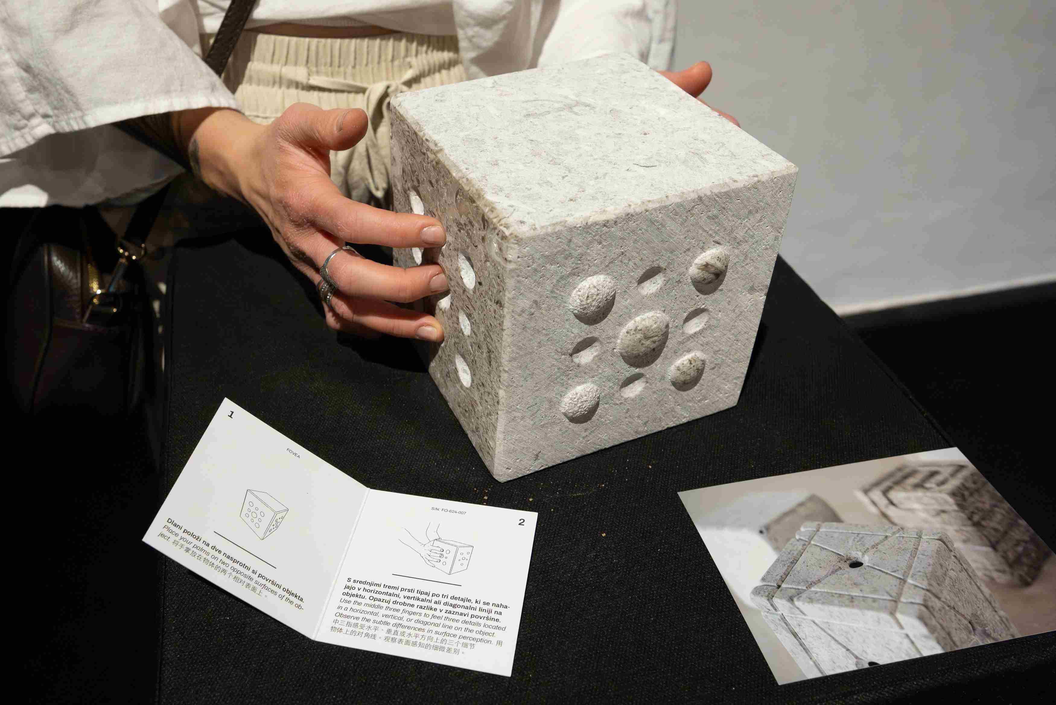 Špela Šedivy z razstavo Navodila za uporabo so priložena posebno pozornost namenja taktilnosti. Z infografikami ob umetniških delih nas nagovarja, naj se kiparskih del dotikamo, nekatera od njih pa tudi vzamemo v roke, jih obrnemo, stisnemo in stresemo, ter nas vabi, da k razstavi pristopimo drugače, kot smo vajene_i. Namesto uporabe zgolj enega čuta, je tu ključ do polnega doživetja razstave izkustvo, ki prihaja tudi prek drugih čutov, še posebej pa je pomemben dotik.